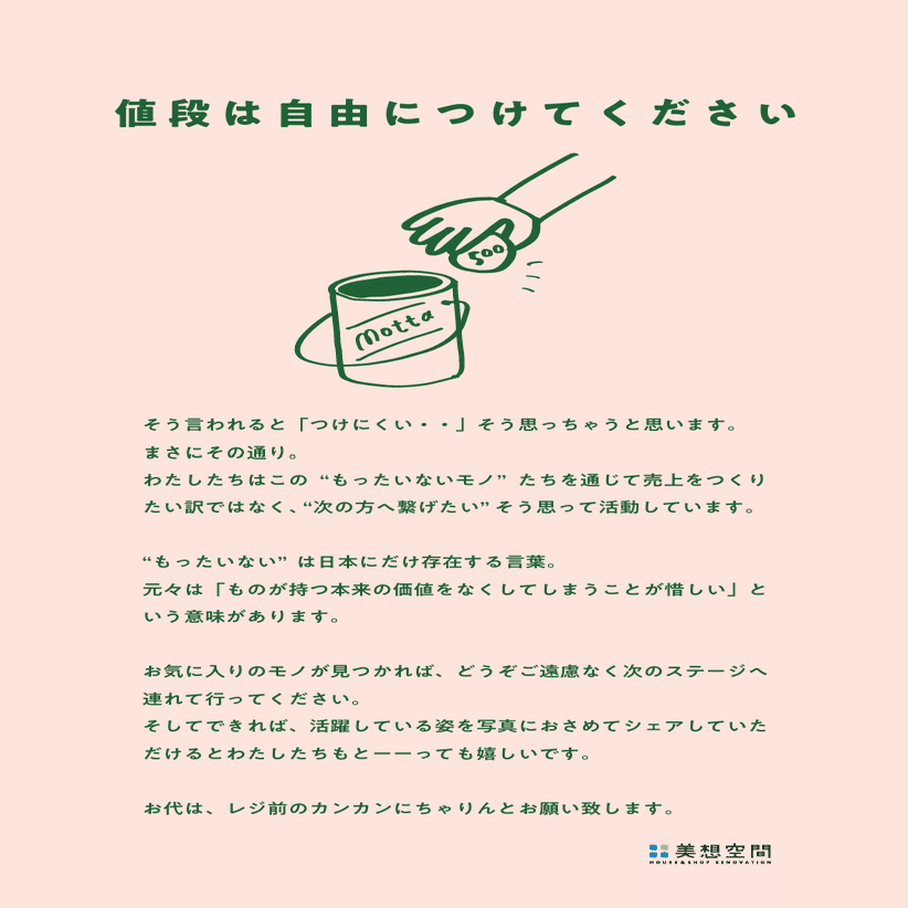 一度役目を終えたものが、新たな価値を見出してくれる次の持ち主と出会えるように、そんな思いのもと活動している。