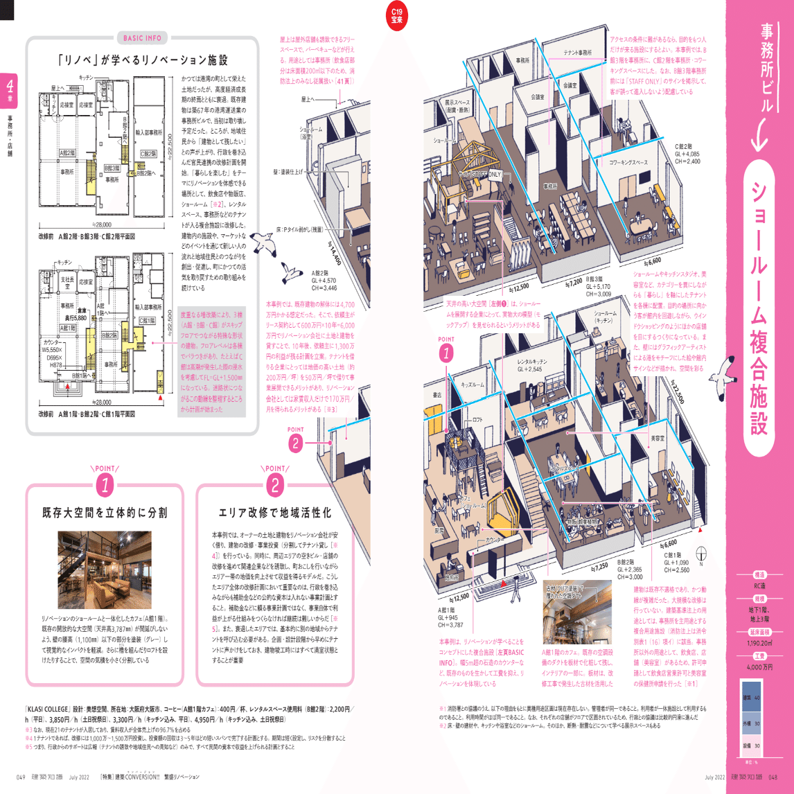 KLASI COLLAGEはコトの評価だけでなく、建物としても高く評価を受け、2022年7月号の建築企画に掲載された。